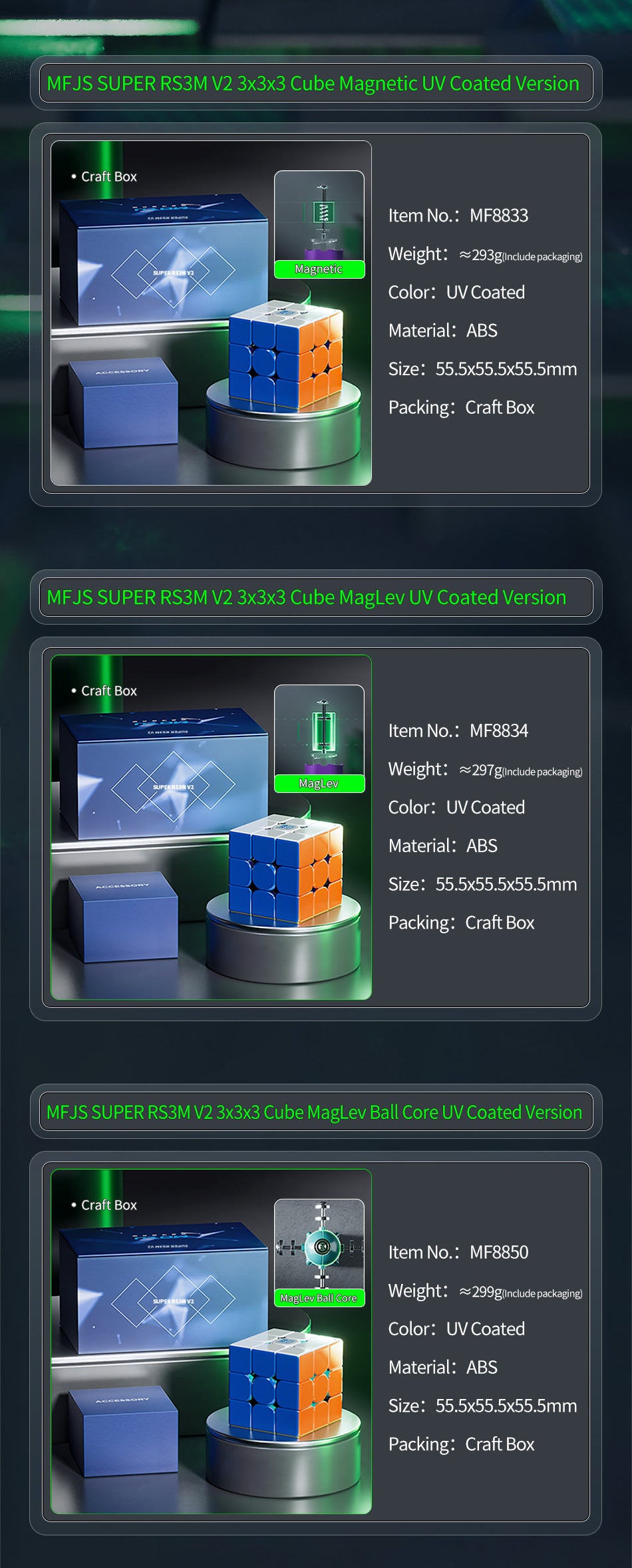 - UV Coated texture (MoYu's Magic Cloth version) enhancement on all 3 models, improving overall grippiness.